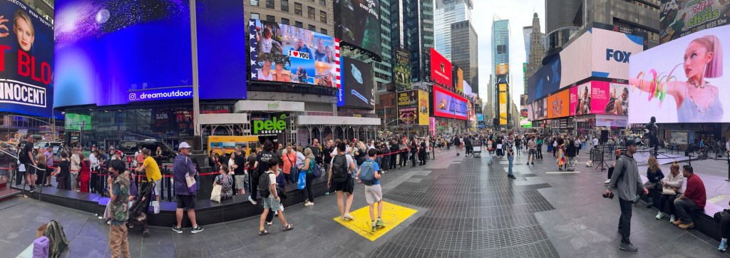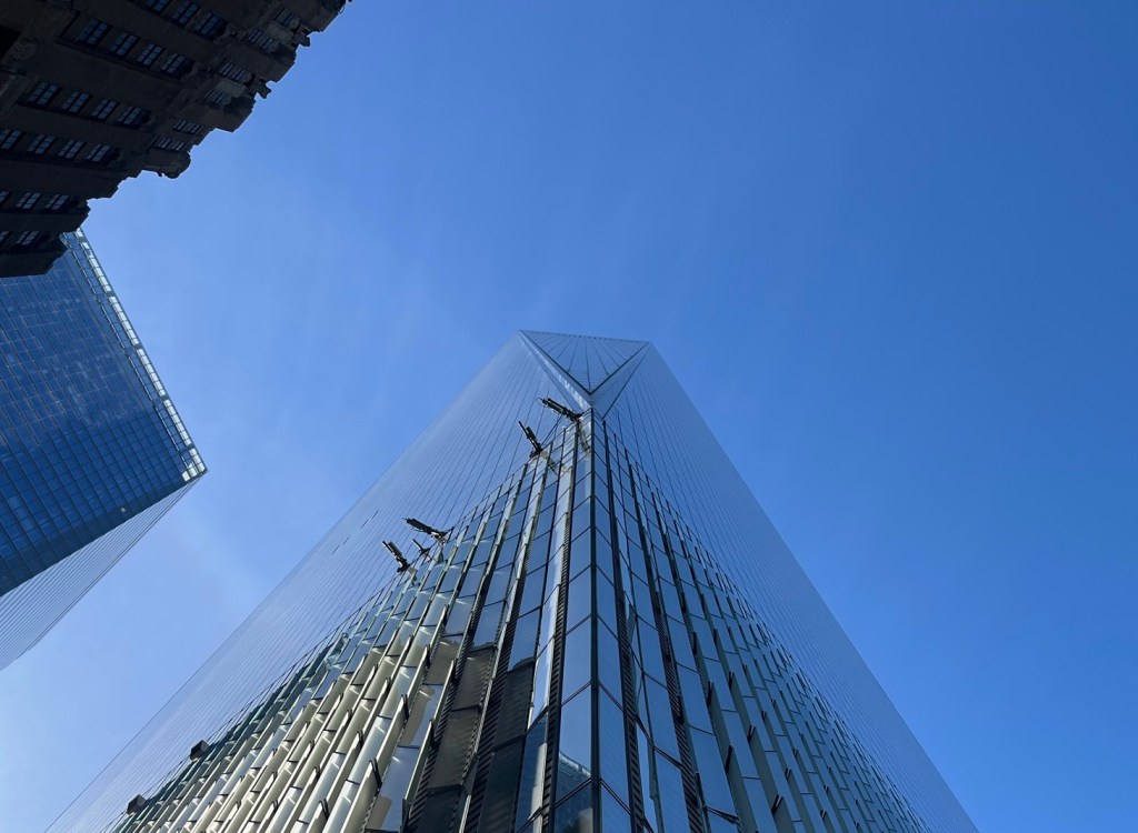 Pour cette deuxième journée, on décide d’aller à Manhattan en bateau. Quand je vous avais dit qu’on était des fous!? On accoste à deux pas du nouveau WTC, monstre de verre et d’acier et l’occasion d’un casse-tête pour comprendre combien de triangles le composent.