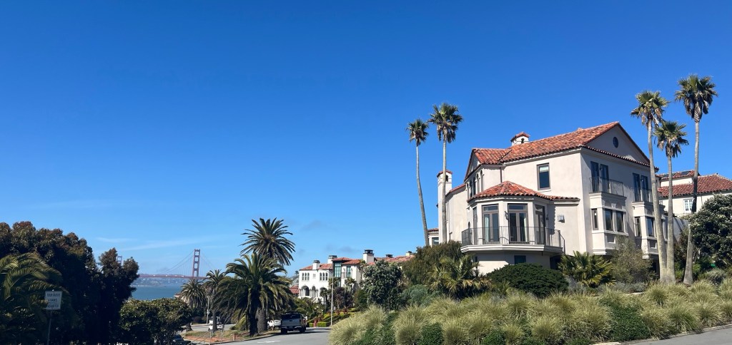D nous disait qu’il y a beaucoup de micro-climats à SF … c’est pire que ça, on peut perdre facilement 12° en passant le croisement d’une rue à cause d’un courant d’air, d’un passage à l’ombre ou d’un clignement de paupière gauche. C’est frappant. Globalement, l’air est délicieux et vivifiant. Merci l’océan.