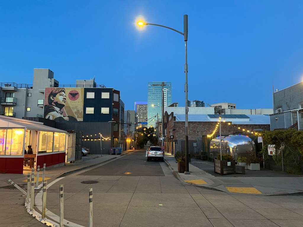 Il commence à faire nuit, un froid de canard s’est abattu sur ce quartier animé, d’autant que je ne joue pas à chat avec les kids pour me réchauffer. Tout ce petit monde se rentre après sa glace, tandis qu’on va dîner avec J chez Rich. Le restaurant porte bien son nom, mais je dois dire que c’est délicieux. Assis au bar, on enchaine les petits plats très créatifs, et on les arrose de vins californiens qui ne valent pas rien (un verre pour le prix d’une bonne bouteille de Bordeaux en France). Mais c’est une des dernières soirées avant un bail, et je suis avec mon vieux poto, on discute de nos vies. On finit dans un bar métal dans le style Berlinois, mais plutôt calme à cette heur. Il y aurait eu plus de décibels à l’opéra haha. SF après 23h c’est Paris au mois d’août. Le bar propose environ 40 bières pression, mais celle qu’on commande est vraiment trop amère. On fait donc la fermeture, heureux de cette soirée, un peu comme si on avait joué à chat en faisant coucou aux trams.