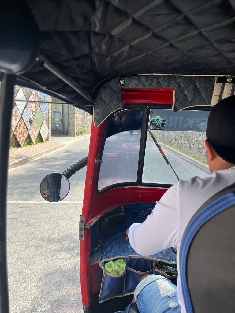 Le temps n’est pas superbe, mais on n’est pas venu ici pour admirer le jardin, si beau soit-il. On décide d’aller à la reserva natural, et pour faire comme tout le monde, on attrape un tuktuk. Ce petit machin rouge qui fait la taille d’un colis Amazon, et le bruit d’un marteau-piqueur Marseillais va plus vite qu’un scooter débridé. Ceinture ? Y’a pas ! On est serré à 4 sur les 3 sièges arrières, on est à 2 doigts de descendre pour pousser pendant les montées trop raides, ou de se faire éjecter dans les virages trop serrés, impossible de s’entendre, mais on rigole comme des baleines, et c’est plus authentique que chez Disney, bref, un truc à faire !
