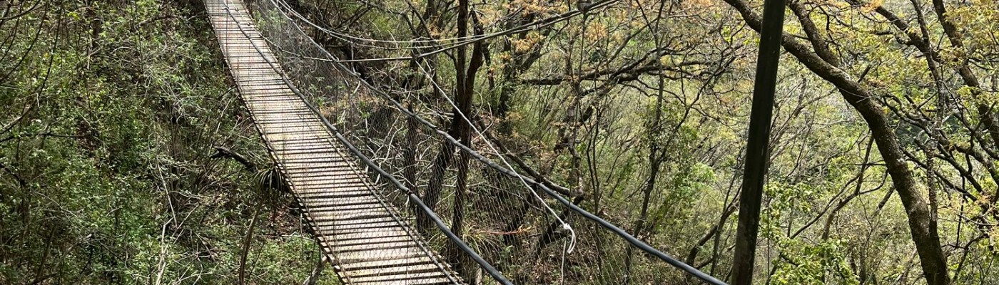 Nous sommes déposés devant l’entrée du parc. Le plan affiché peut laisser croire qu’il y a pléthore de randonnées à faire donc on attaque. On n’a toujours pas de chapeau ni de lasso, mais on ne peut pas s’empêcher de chanter Indiana Jones a tue tête lorsqu’on traverse les nombreux ponts suspendus. On ne peut pas courir, ca tangue, donc on regarde alternativement le paysage et sous ses pieds. C’est bien parfois de marcher lentement. La forêt tropicale, les cascades inattendues, la chaleur humide, les paillons bleus, tout le monde est d’accord pour dire que la rando est exceptionnelle!