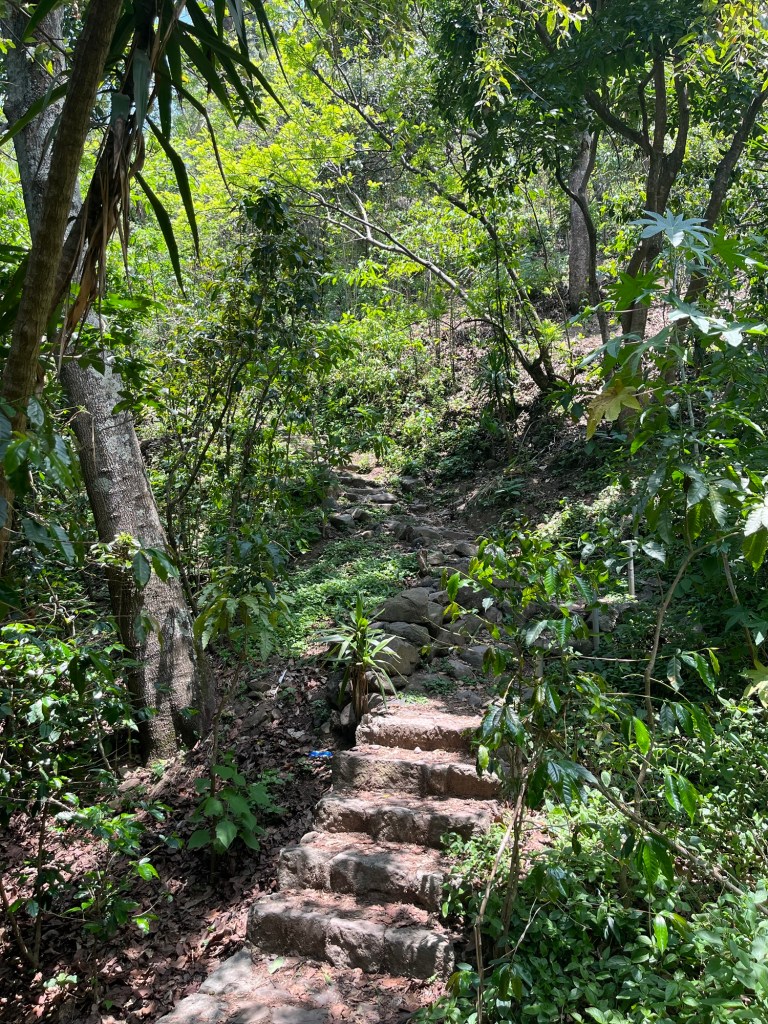 Alors que les enfants du village démarrent leur cours de sport, nous continuons notre ascension mais les rues se font de plus en plus raide. La chaleur est lourde et les gourdes légères, à mon grand regret, on ne va pas aller loin. C’est dommage car la forêt semblait magnifique…