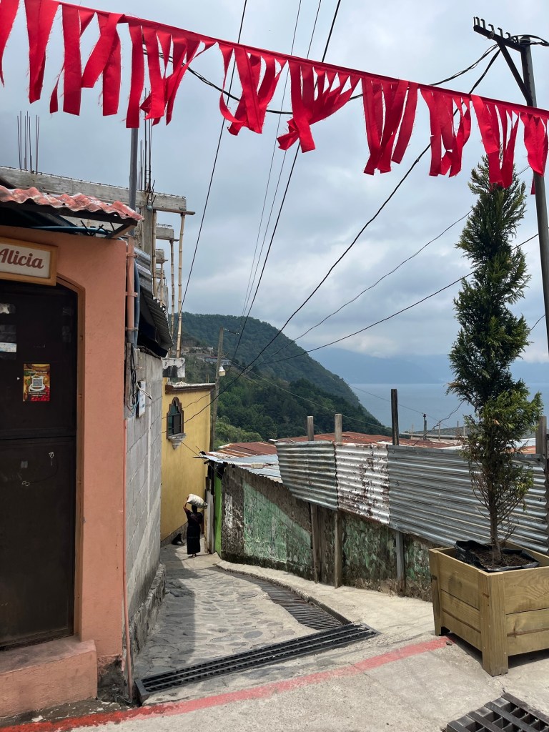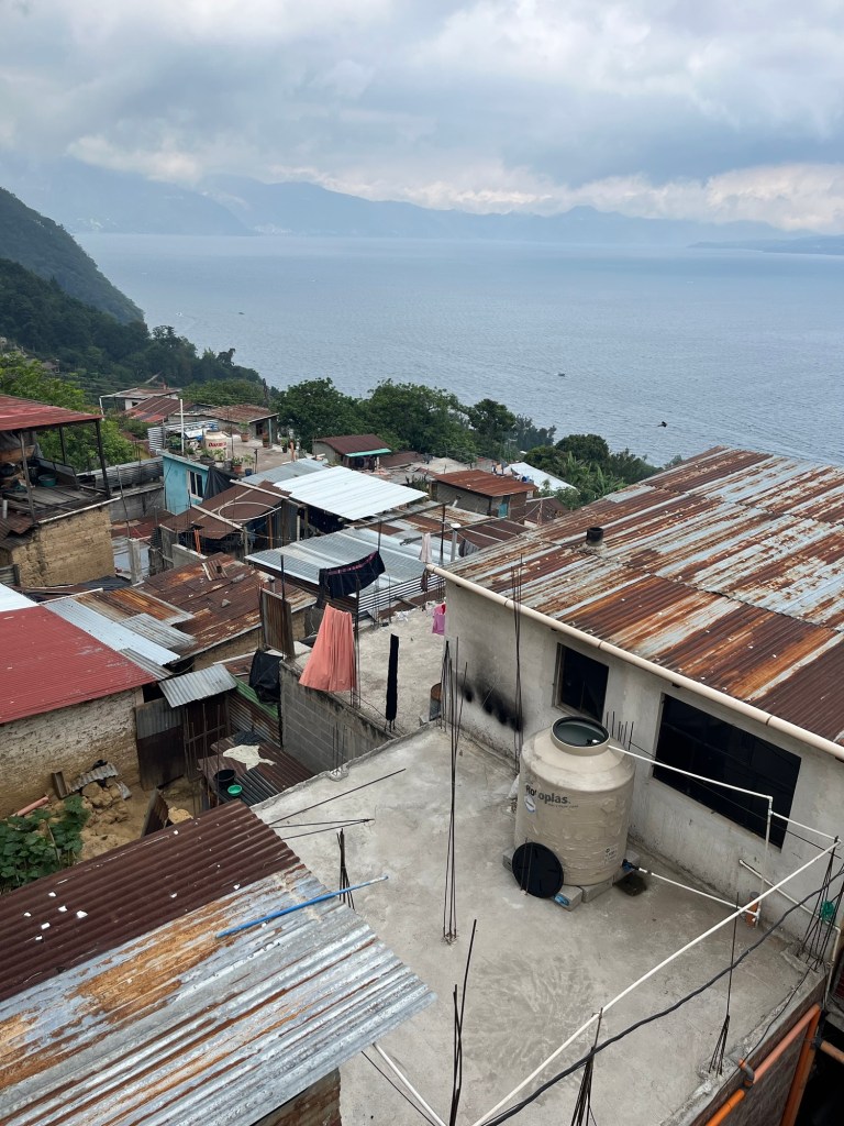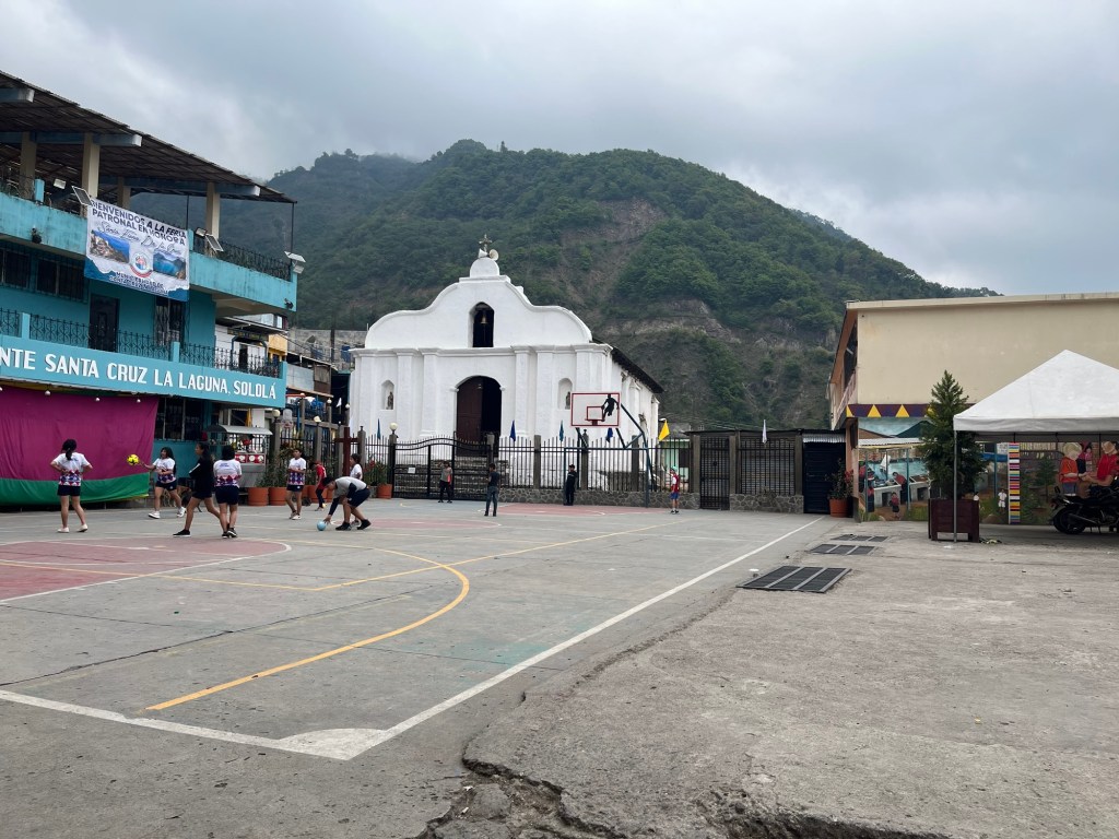 On arrive à la place centrale du village, avec son terrain de foot, coincé entre l’église, l’école, et le centre de la communauté qui tient lieu de mairie. Il flotte une très belle ambiance, mais certains commencent à avoir faim. Aucun des restaurants ne semble passer le minimum requis par la DGHS. On opte pour celui qui a déjà quelques clients attablés, et on monte à l’étage pour oublier les conditions d’hygiène qui règnent (ou pas) dans la cuisine, et pour admirer la vue plongeante sur le lac. On aurait eu le temps de redescendre au lac et remonter avec un chargement de bois quatre fois mais ça arrive enfin. Je ne vous cache pas que ce ne fut pas le meilleur déjeuner du séjour et qu’on n’est pas complètement sûr de ce qui avait été mélangé au poulet dans les tacos. Mais avec une bière et beaucoup de citron vert c’est pas si mauvais la viande de chien qui erre. On voulait de l’authenticité….