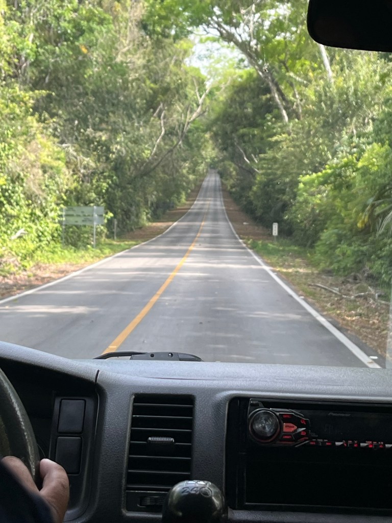 Sans surprise je me réveille tôt. Très tôt. Mais j’en profite pour écrire et regarder l’aube sur la jungle. On arrive à la petite ville de Florès vers six heures. On prend un dernier shuttle de 1h30 environ qui nous conduit au cœur de la jungle.