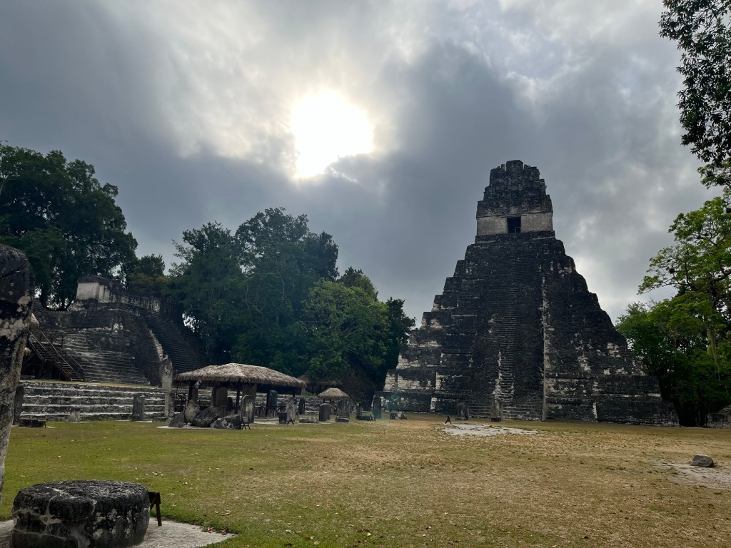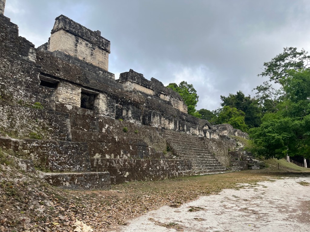 Je me réveille à 5h15 avec le chant des oiseaux. Dormir dans la jungle, est un dépaysement total. Le ciel est plutôt gris, donc aucun regret de ne pas avoir pris l’option « lever du soleil ». Se lever à 4h du matin, marcher dans le noir comme un zombie, taper dans les racines en jurant. se taper toutes les marches de la pyramide en se lamentant, tout ça pour voir des nuances de gris? Merci.