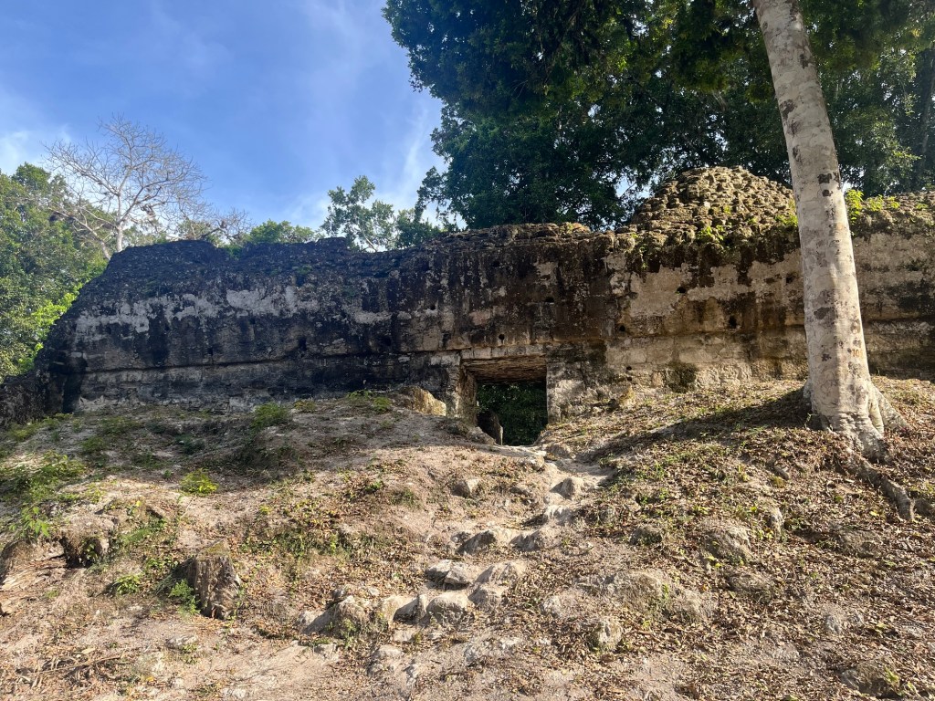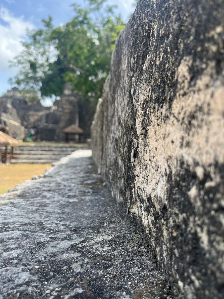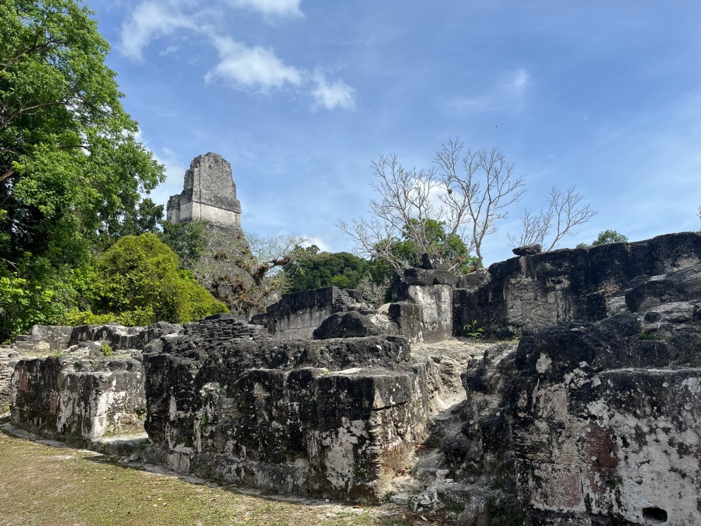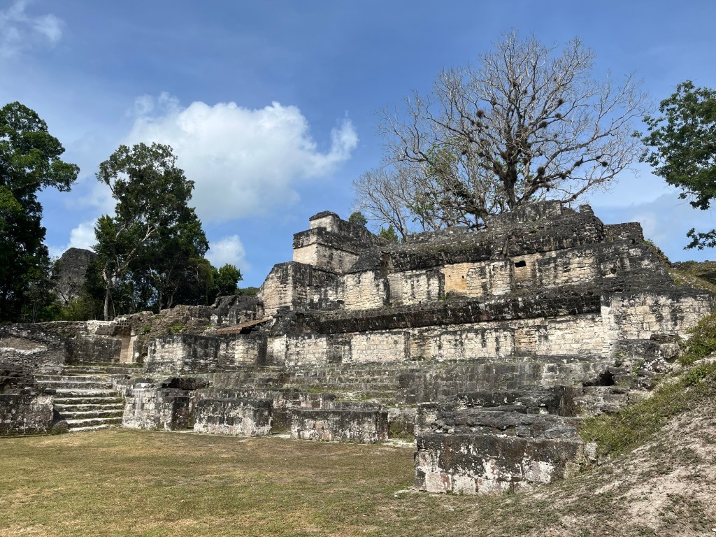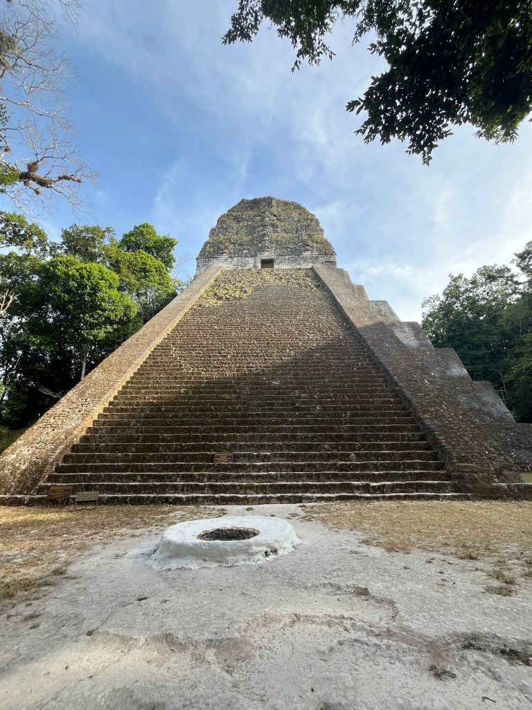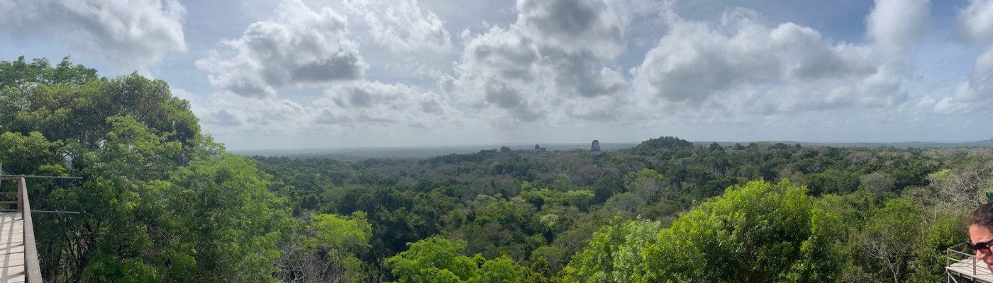 Entre le déjeuner et la piscine, les kids n’ont pas l’énergie pour anglais, rédaction et géométrie. On s’y colle quand même. Et puis je retourne avec A sur le site archéologique, où l’on découvre encore de nouvelles parties de la cité qui semblent encore plus belles que ce qu’on avait vu le matin. On croise pas mal de singes à cette heure-ci, la température est déjà plus fraîche et les touristes déjà repartis prendre leur goûter. Ce site est grandiose. Monumental. On termine par l’ascension au pas de course du plus haut temple précolombien, haut de 70m! l’équivalent d’un immeuble d’une vingtaine d’étages. On domine largement la cime des arbres, et l’on peut voir la jungle à perte de vue. Seuls émergent les autres temples. Divin.
