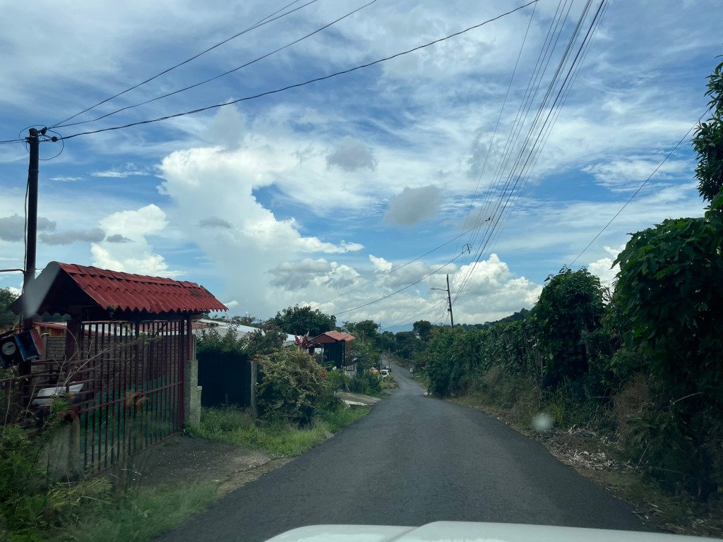 La conduite est fort prudente et cordiale ici, et la nature incomparablement verte. J’irais même jusqu’à dire que l’herbe est plus verte ici. Il n’y a pas un papier qui traîne, là-dessus le Guatemala ne me manque pas. Malgré quelques nuages, on ne pas pas nier que les paysages sont fantastiques ici. Un aperçu de ce que sera la Suisse le jour où les palmiers y pousseront.