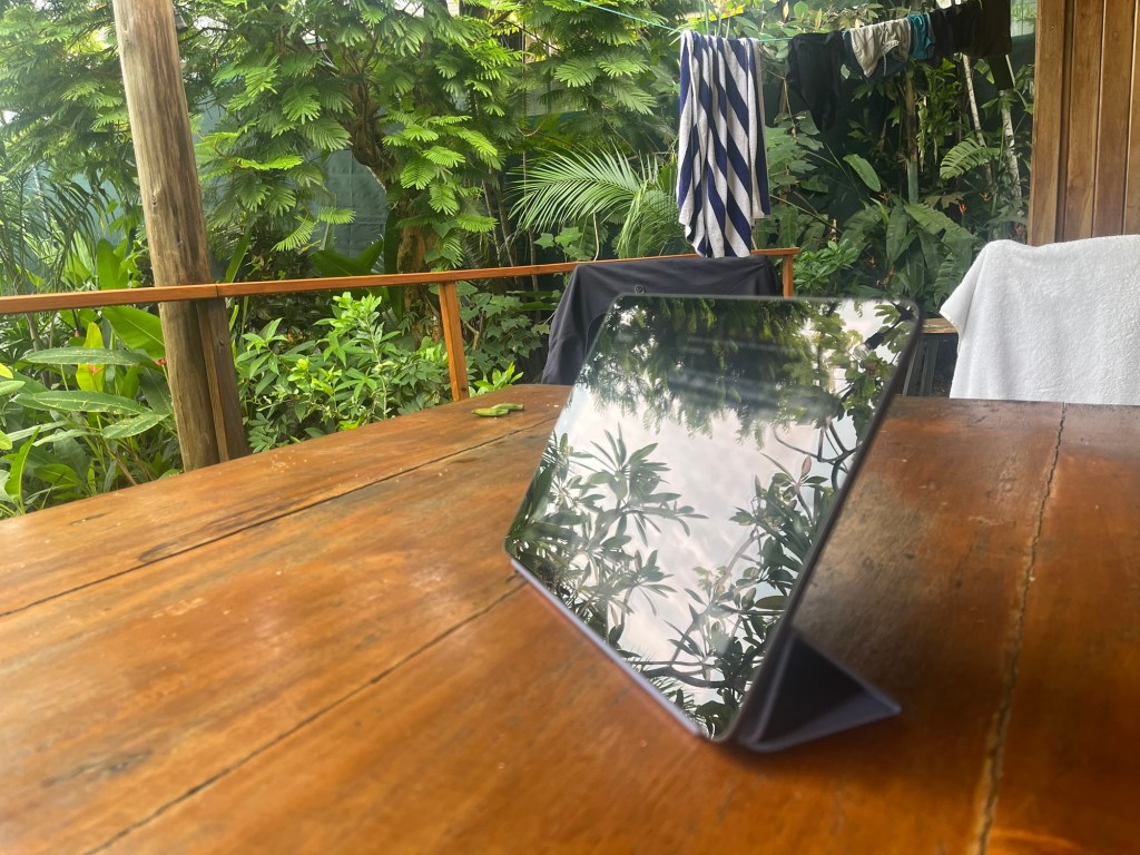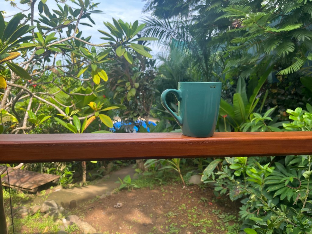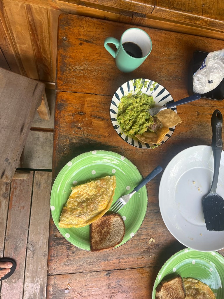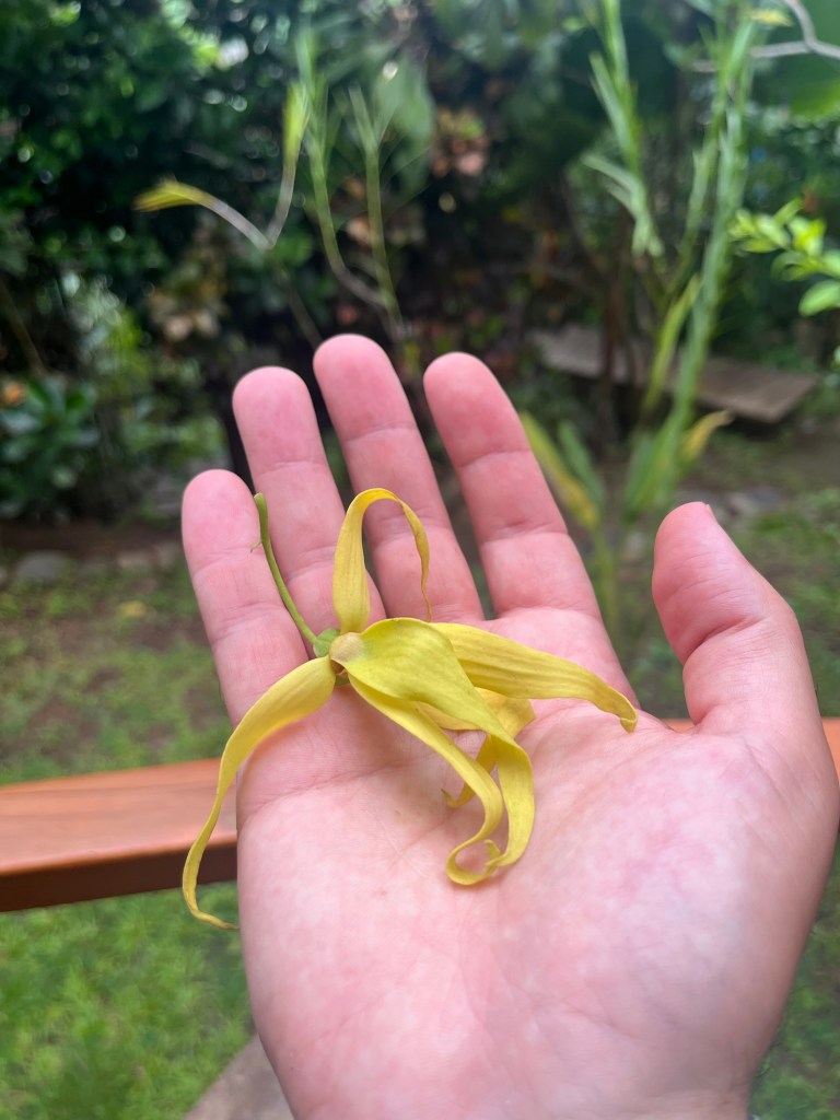 Après seulement deux jours dans cette splendide cabane, cachée dans la jungle paradisiaque, il est déjà l’heure de refaire les valises. On se fait un bon petit-déj’ sur cette terrasse bohème qui sent bon le Ilan Ilan, un arbre d’aspect très quelconque mais dont les petites fleurs jaunes et plutôt mignonnes, diffusent un parfum envoûtant. On apprend à Luis la signification du mot Ilan en hébreu, ce qui semble le combler de bonheur jusqu’à la fin de la journée. Il fait aussitôt le tour de tous les balais de la maison et se met à gesticuler pour essayer de nous décrocher une fleur, oubliant son âge. C’est finalement un travail coordonné d’équipe qui nous permettra de faire tomber deux précieuses fleurs pour Madame, avec le sourire fier du cueilleur.