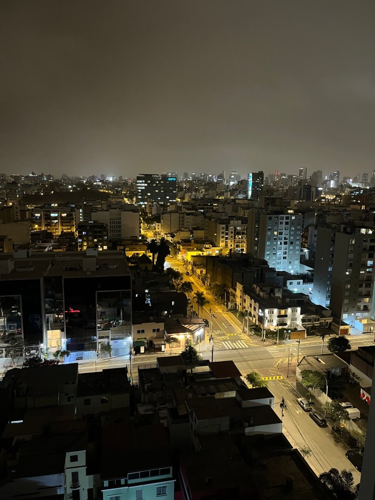 Vol de trois heures qui nous permet de travailler un peu, de lire, d’écrire … et nous amène au fantasmagoriques Pérou ! Pas facile de passer des singes à tête blanche et crabes aux pinces rouges, à une mégalopole sans couleur de 10 millions d’habitants. Lima …. c’est pas le Pérou. L’aéroport est extrêmement moderne – il a été inauguré, il y a juste 12 jours ! On a l’impression de faire partie du G4. Dès qu’on sort de l’aéroport, la délicieuse et fraîche odeur de l’océan nous caresse gentiment les naseaux, comme une invitation à un ceviche. Notre conducteur est très impatient, il alterne le klaxon et les appels de phares à toute voiture qui oserait se trouver à moins de 100m devant lui. Impression de G4 à nouveau …. Le genre insupportable sur l’autoroute. Alors en ville..