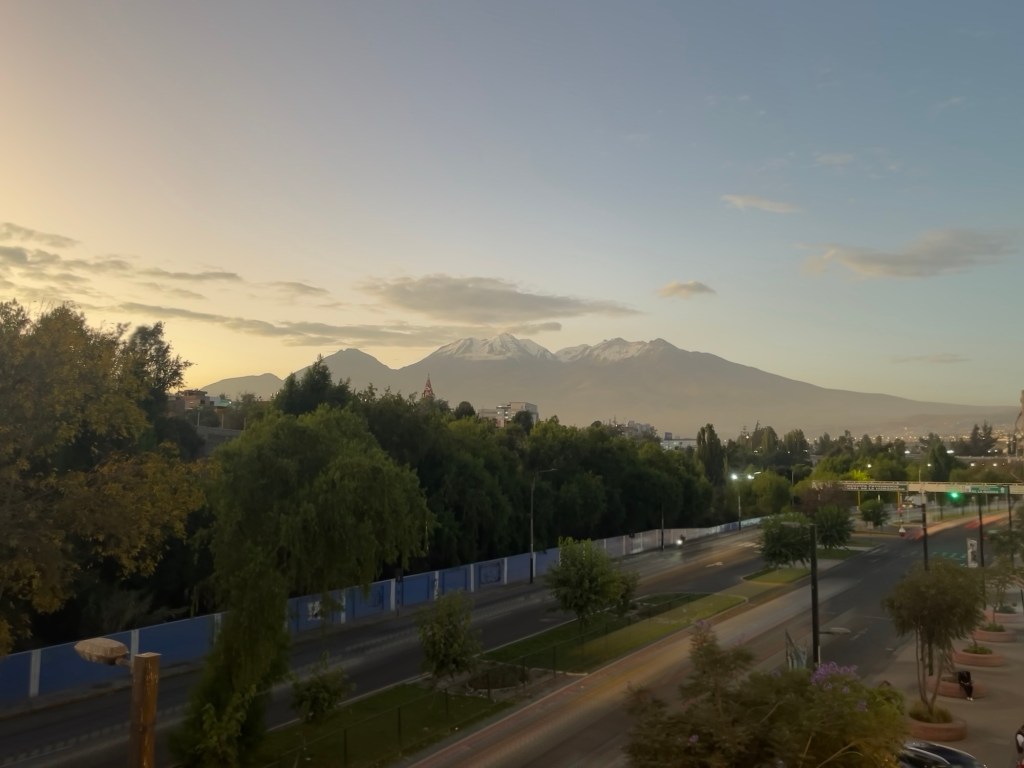 C’est un volubile et jovial gardien d’immeuble qui nous remet la clé. Napoléon. Comme quoi, Napoléon ne rime pas qu’avec ambition. L’Appartement est pas mal, sans grand charme, mais fonctionnel, clair, avec une vue sur le Misti, depuis son flanc jusqu’au sommet enneigé. 5800m quand même malgré un nom qui ne paie pas de mine. Misti …