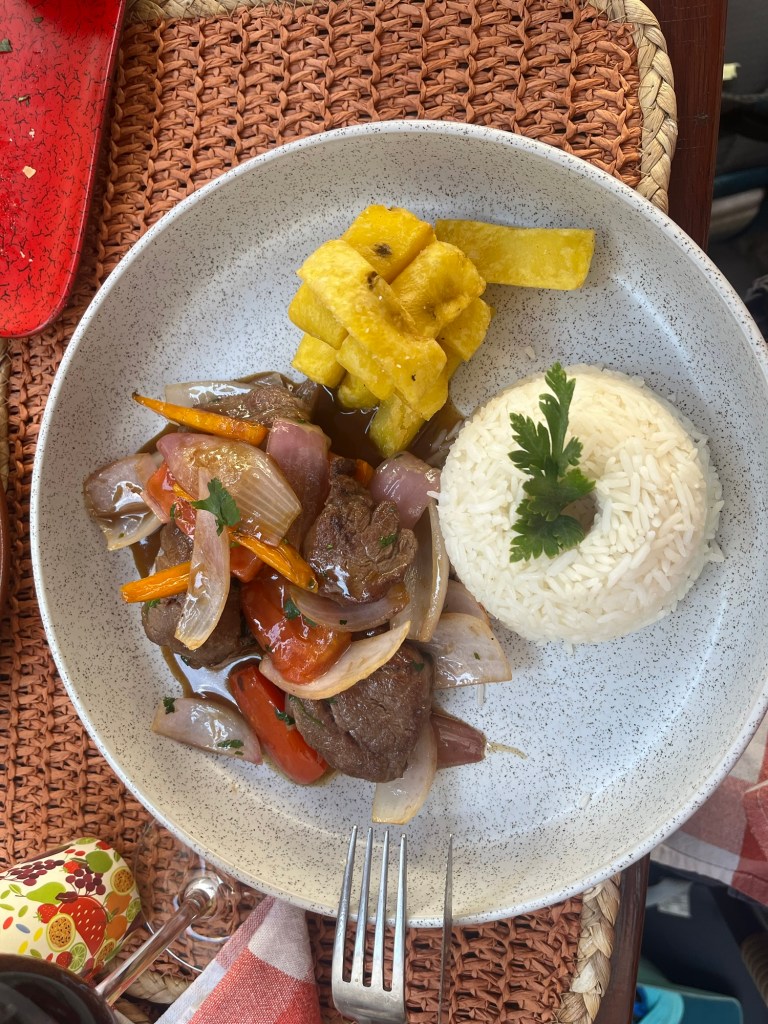 On entre dans le patio d’un très bon restaurant. Le lomo saltado accompagné de frites de patates jaunes est fondant et savoureux. On se rend compte que le patio est en fait partagé avec deux autres restaurants! J’ignore s’ils appartiennent aux même propriétaire mais je trouve le concept très sympa, on voit ça rarement chez nous. Un pied de nez à la lutte que peuvent se livrer des restaurants d’un même trottoir…