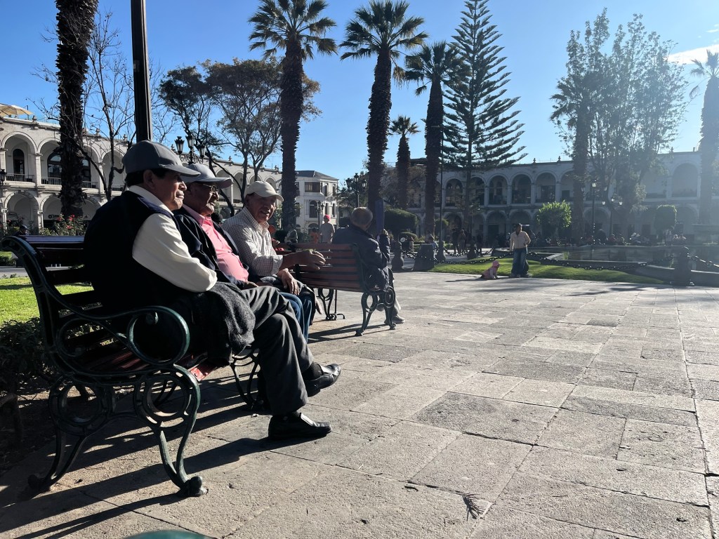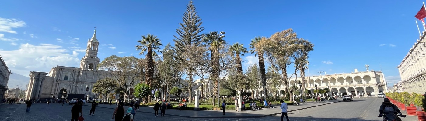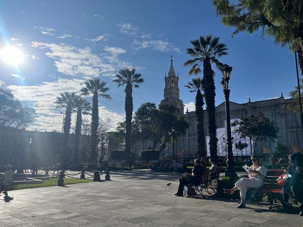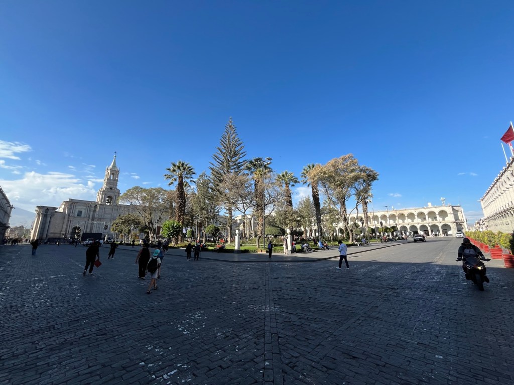 On arrive à la gigantesque place d’armes, dominée par l’imposante cathédrale en marbre et pierre volcanique blanche. Les Espagnols ont mis le paquet pour évangéliser les peuples autochtones et tenter d’effacer leurs cultures. Ça fourmille d’activité, de familles, de jeunes couples, de touristes, de petits vendeurs, bref la vie! On adore l’ambiance.