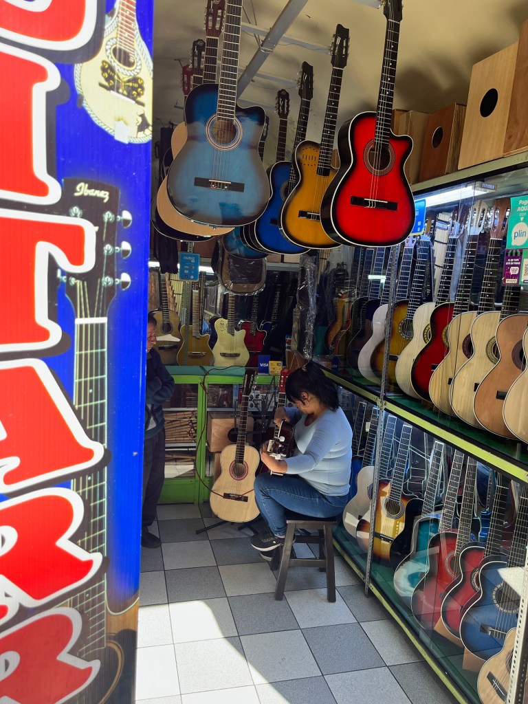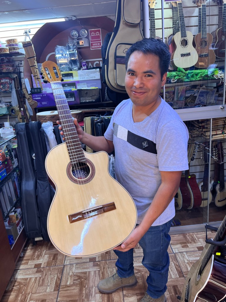 Partant de ce postulat, il y a deux approches. C’est ce que j’appelle la décision du dimanche soir. Soit on se lamente dès 16h en se disant qu’on a plus trop de temps avant la fin du weekend et du coup cela plombe encore plus le moral; soit au contraire, on se dit qu’il ne nous reste que quelques heures et on décide d’en tirer le meilleur. Je ne dis pas que c’est facile, mais tout le monde conviendra que l’option 2 est la meilleure. Sachez tous que la décision du dimanche soir s’applique également à notre vie. Il faut profiter de l’instant, quelles que soient les conditions et le temps qu’il nous reste. Car ce qu’on n’a pas réalisé aujourd’hui ne se réalisera pas demain. C’est un peu pour cette raison qu’on fait ce voyage d’ailleurs. Tandis que T et les enfants vont prendre le soleil sur la place d’armes, je m’octroie le luxe d’aller flâner en solo dans les nombreux magasins de musique de la ville. Je rentre chez un jeune luthier, qui entretien consciencieusement une guitare. Il ne parle évidemment pas un mot d’anglais, mais on arrive à échanger sur les instruments locaux, ainsi que sur la musique Arequipenne, une variante de la musique Andine. Chouette moment.
