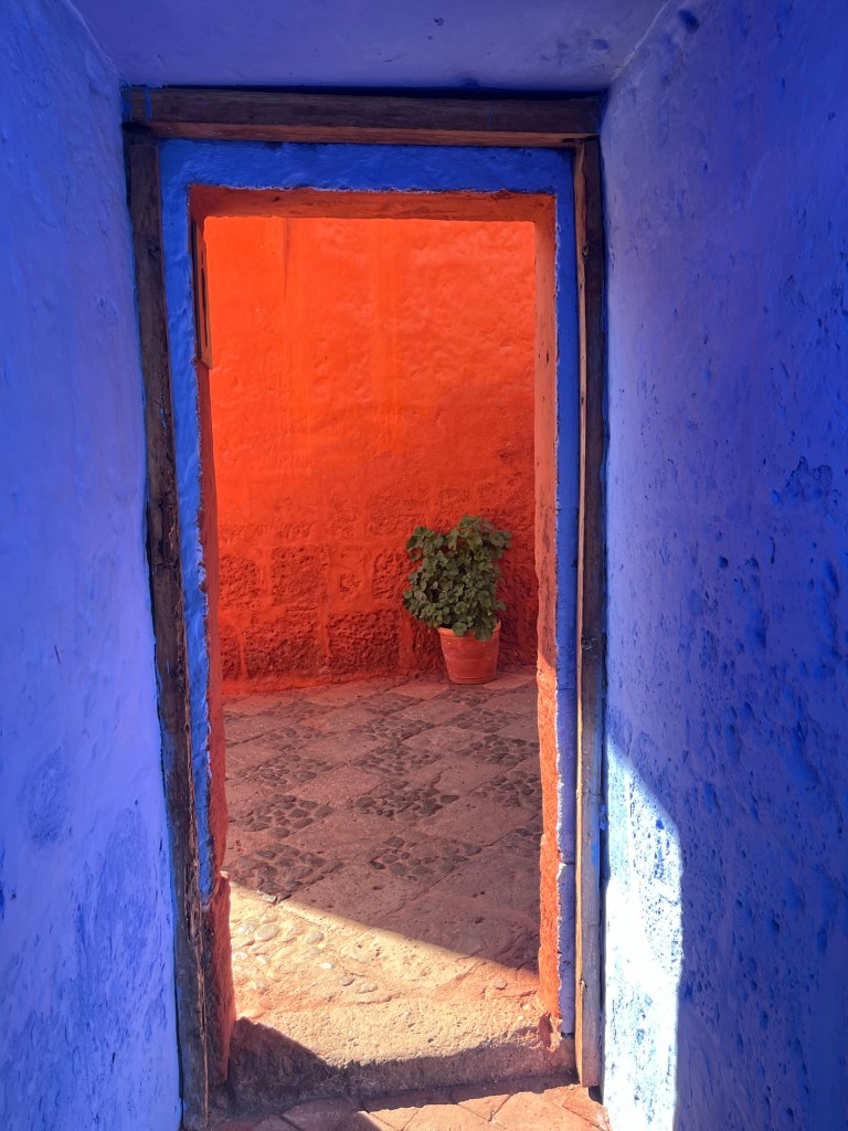 T n’a rien trouvé de mieux que le couvent de Santa Caterina pour passer l’après-midi. Un peu léger après la journée aux salines, mais je ne peux évidemment rien dire, car je n’ai absolument aucune activité alternative à proposer. On entre, un peu dubitatif au début. Mais je dois dire que l’endroit respire la beauté et la quiétude. On refuse les services de la guide, qui nous adresse un simple, laconique et automatique « gauche-dedans-dehors » en français. On la fait répéter plusieurs fois, en se demandant s’il s’agissait d’une ancienne insulte Arequipenne contre la couronne d’Espagne, ou bien un problème de traduction de sa part.