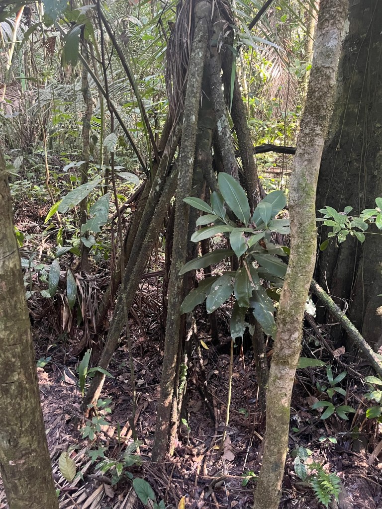 Comme la veille, un réveil à 2h me permet d’apprécier le fond sonore de la jungle. Il y a une activité permanente dans les arbres comme au sol. J’entends des pas légers, un peu comme suivis d’un sac de sable, probablement la queue ou le ventre d’un animal. Ou un serial killer qui traîne un sac poubelle, qui sait …L’obscurité est totale et il est impossible de dire si ça se passe en dehors ou dans la case. J’adore ! J’écris quelques lignes dans ce milieu nouveau, puis me rendors avec le sourire, jusqu’au matin.