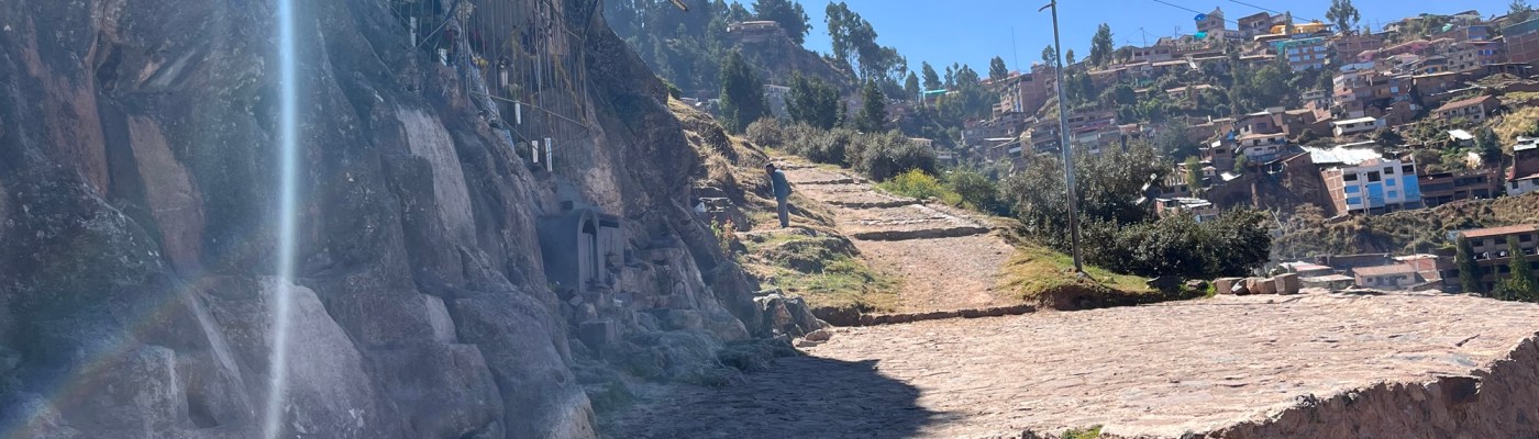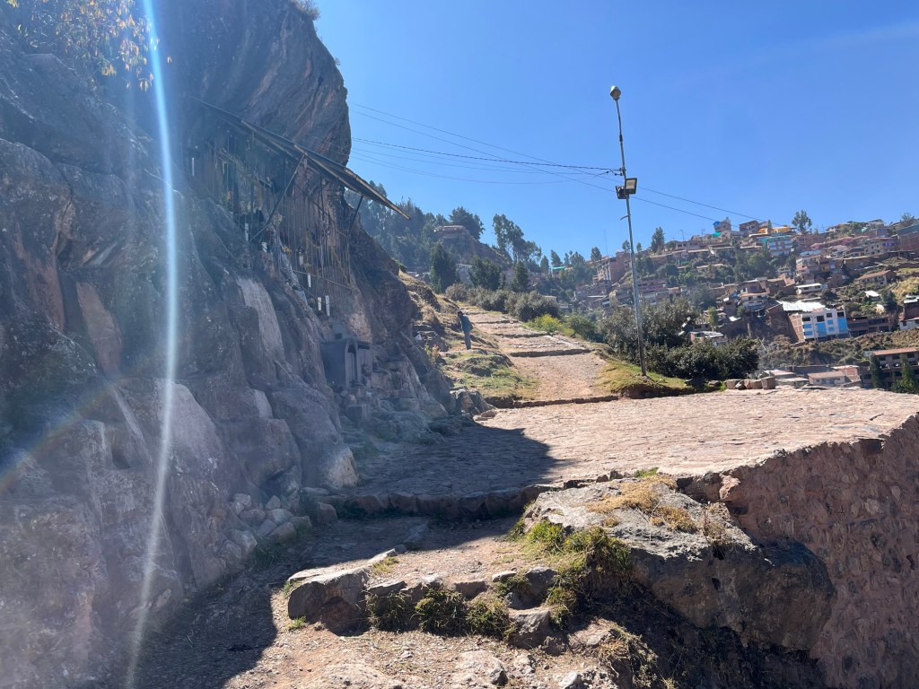 J’embarque A pour une balade autour des nombreux sites archéologiques dans le quartier. Puis on enchaine avec le tunnel de san Blas, qui devait au 16e siècle rejoindre le Temple du Soleil et Sacsayhuaman, ce qui représente des milliers d’heures de travail – creusé sans le moindre outil moderne il y a 500 ans. On entre avec une prudence respectueuse dans le tunnel, mais après une dizaine de mètres, l’obscurité totale nous arrête net. Le tunnel avait été bouché par les Incas à l’arrivée des conquistadors à Cusco, mais il a été rouvert il y a quelques années, et Paloma était présente lors de sa réouverture. Quelle émotion ça doit être, toucher l’histoire ….