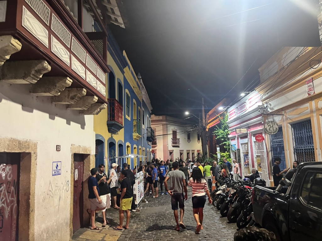 Il fait très beau en ce premier matin à Olinda. Personne ne bouge une oreille, mais le temps que je me prépare pour aller au marché J, puis A puis T se lèvent successivement. Effet de surprise raté. Changement de programme, je fais un petit état des lieux : la poêle a servi pour déterrer des rats, la gazinière est en PLS, et il n’y a pas de filtre pour la machine à café. La préparation du petit dej va être tendue. On me répond d’aller voir Luis dont l’épicerie semble ouverte à toute heure de la journée mais on ne se comprend pas beaucoup mieux que hier soir. Il est en train de discuter avec un voisin qui sirote sa bière en canette (à moins que ce ne soit pour dissimuler un café) – il est 8h. On tente d’échanger mais l’alcool n’améliore pas sa diction et donc ma compréhension. Il m’assure que Luis est un type formidable en mettant sa main sur le cœur pour souligner sa sincérité. Ce moment de convivialité matinal a été comme un révélateur dans ma perception de cette maison, de cette ville, et de cette région. Avec l’aimable contribution des voisins du quartier, j’ai pu préparer puis partager un bon café et des œufs au plat plus vite que si j’avais fait l’aller-retour au marché. Et surtout j’ai tapé la discute avec Luis et les voisins.