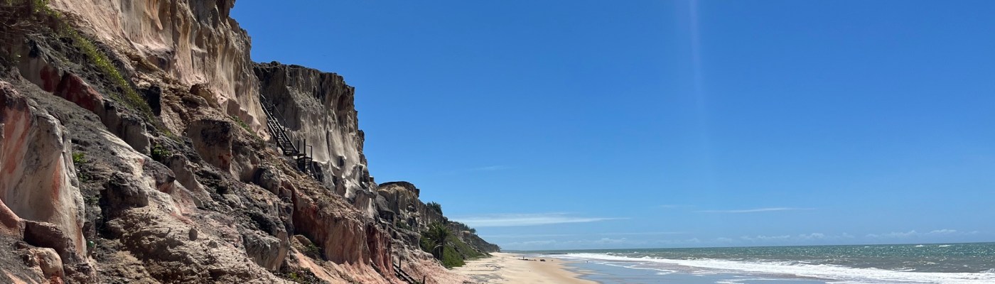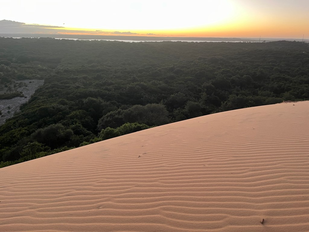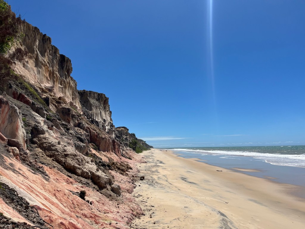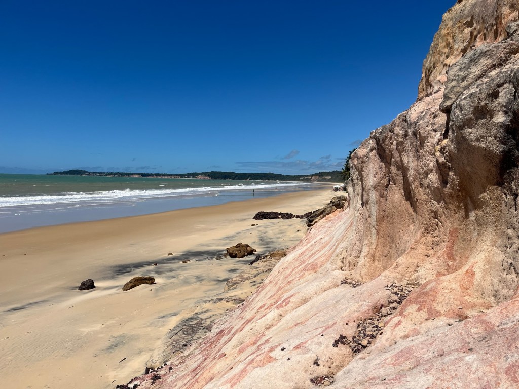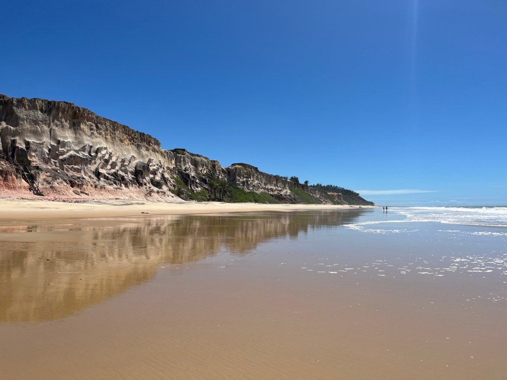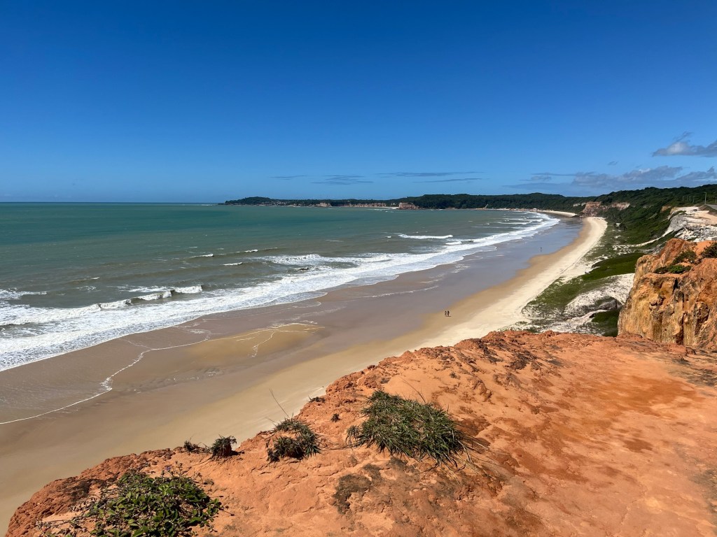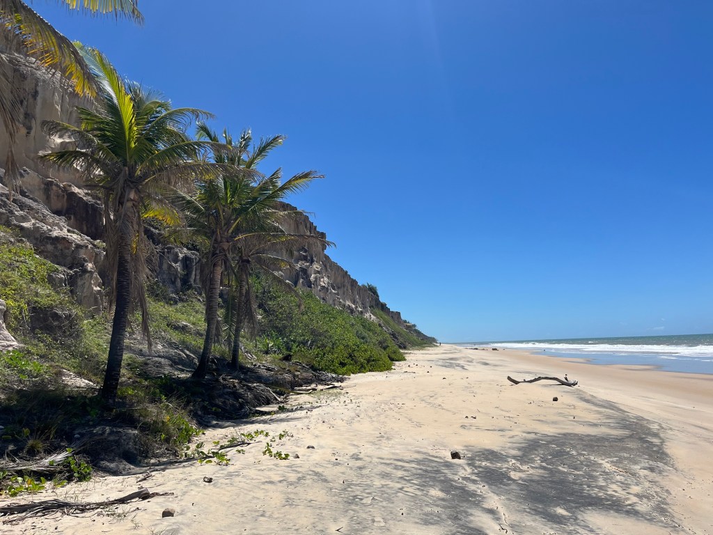 Après avoir fait la fermeture de la réserve des tortues la veille – on a pu en voir quelques unes entre les vagues, depuis la falaise – on s’est dit qu’on irait voir les mêmes falaises de plus près au prochain lever du soleil. Ce qu’on a fait, mais juste un peu après l’aurore. La route serpente entre dunes et falaises, comme la number one en Californie. C’est tout aussi splendide, il fait juste beaucoup plus chaud. En s’approchant du bord, la gigantesque plage fait rêver à l’infini. D’autant qu’elle ne semble accessible qu’après une longue marche. Ou en parachute quand on est pressé.