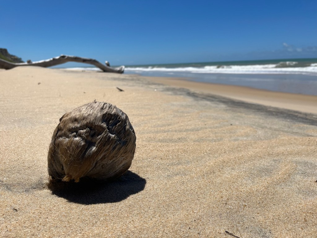 On reprend la route mais Google nous fait faire du yoyo, on ne voit pas d’accès. Un restaurant plutôt chic nous laisse gentiment passer par sa terrasse contre une vague promesse de déjeuner, et nous indique un escalier. Who dares wins. La plage est encore plus belle d’en bas, des kilomètres de sable, de vagues et de falaises grandioses. Et à peine quelques marcheurs courageux et plutôt genre sérieux. On fait un peu d’exercice, on barbotte, on lit, on kiffe sous un cocotier – rien de bien stressant en somme cette matinée.