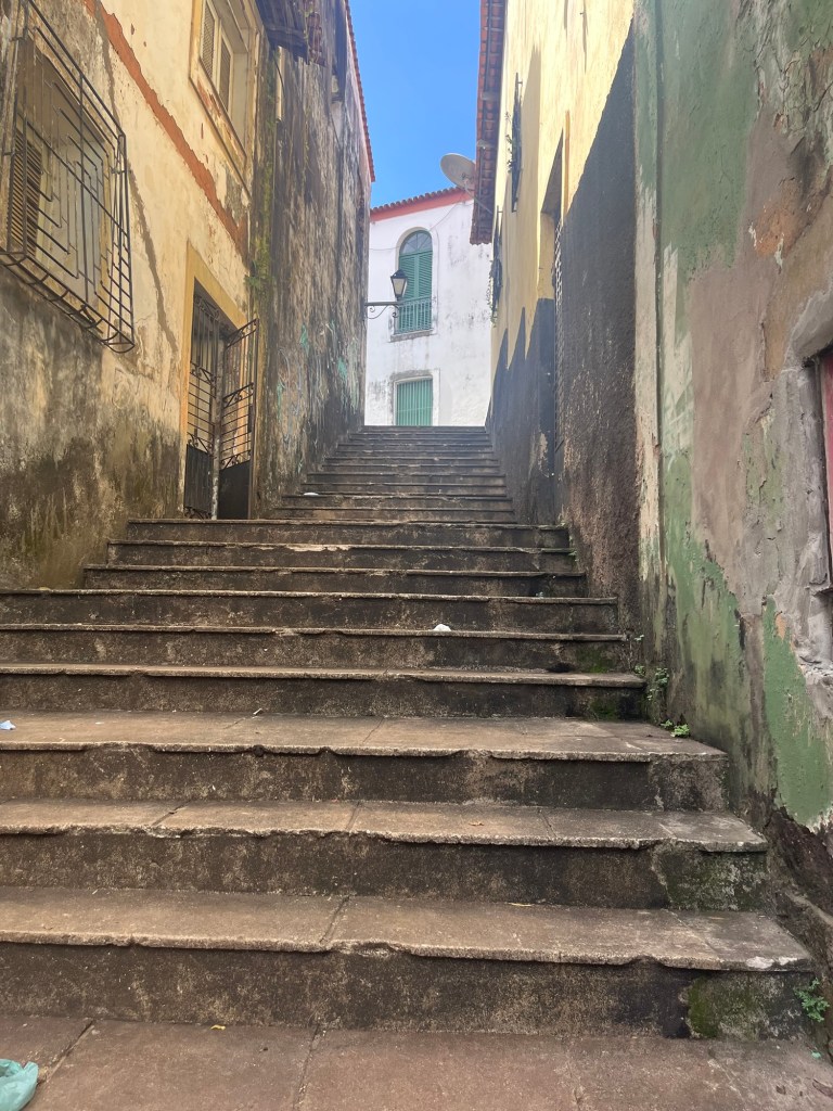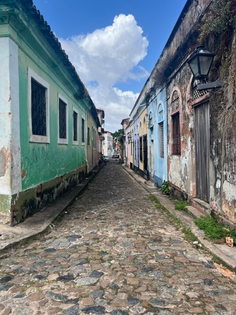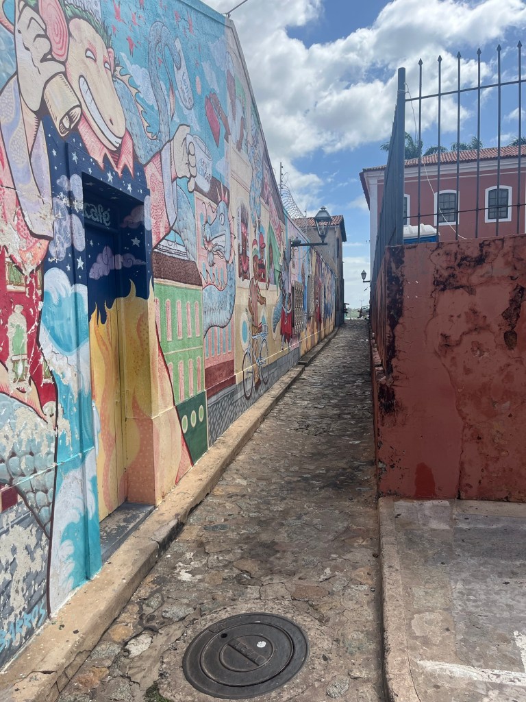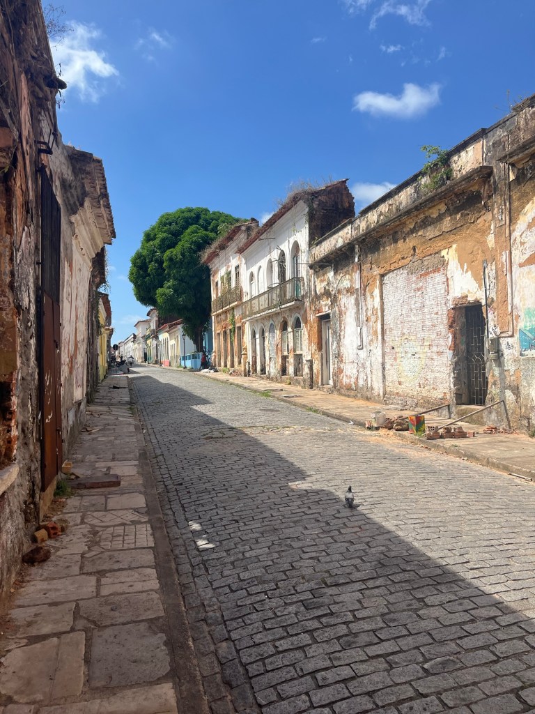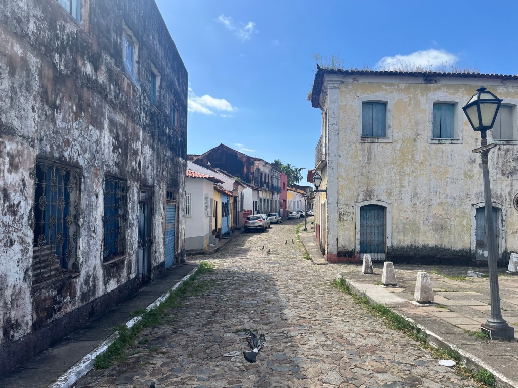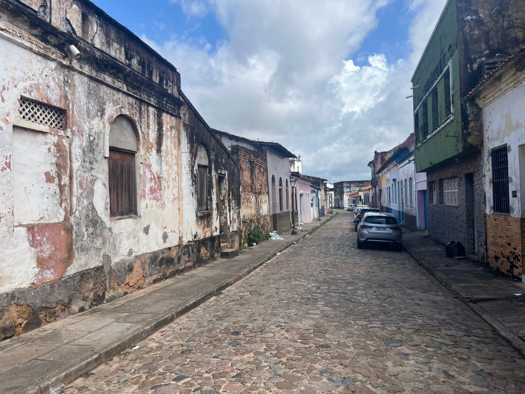 On roule sur les fortifications qui peuvent rappeler Saint-Malo, mais sans les odeurs de crêpe par contre. Il fait très chaud, les maisons ornées d’azulejos gardent le charme fou delà démarche d’une danseuse à la retraite, les quartiers ont été très beau mais … à une époque largement révolue. Aujourd’hui c’est le délabrement avancé, tout est laissé à l’abandon, les bâtiments, les maisons comme les rues… et les gens. Triste. De même qu’à Recife, il y a beaucoup de misère ici, les rares magasins ouverts vendent de l’artisanat et sont concentrés autour de l’espèce de marché d’artisanat et d’alcool.
