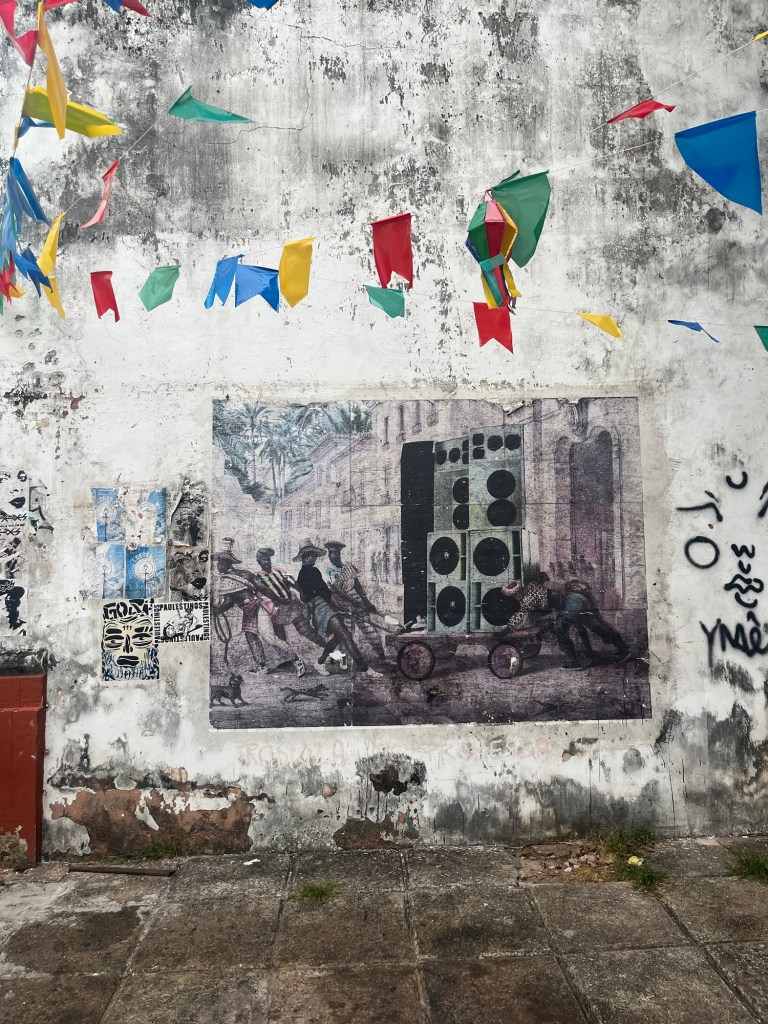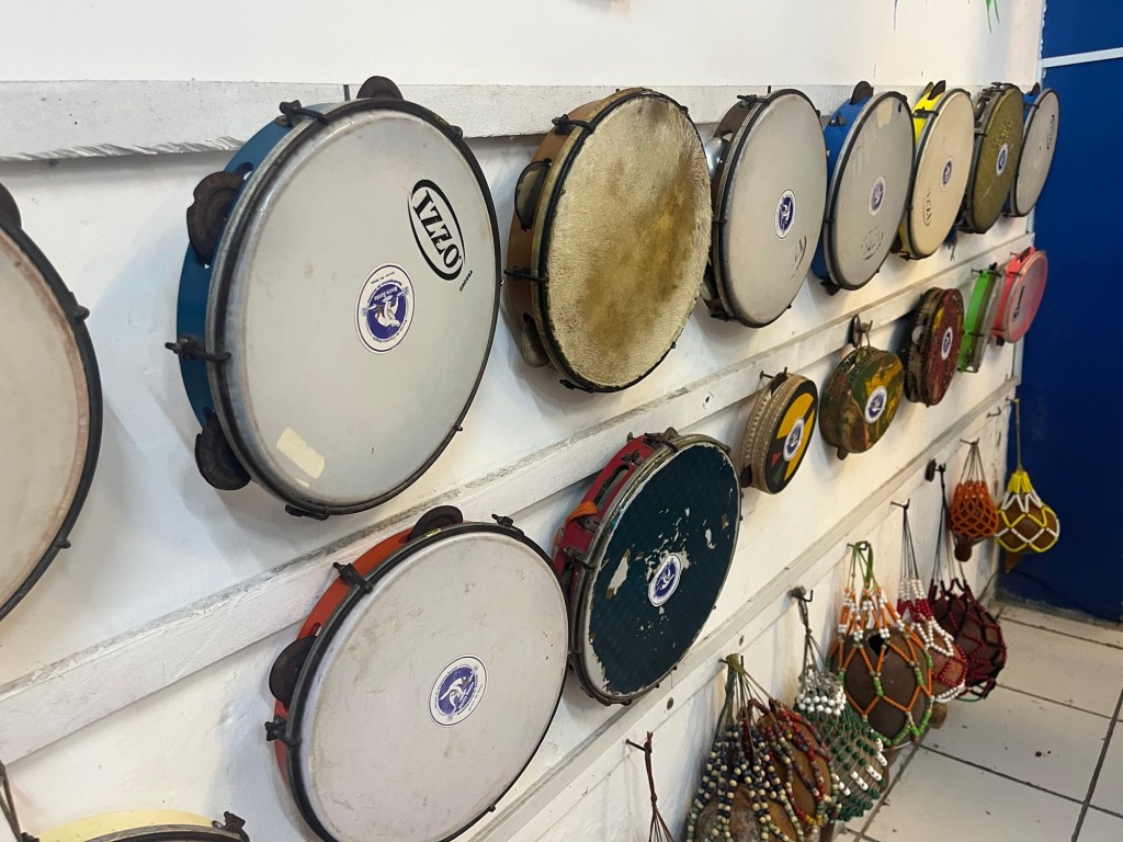 On arrive en ville vers 15 heures, il commence à y avoir un peu d’activité et on tente le musée du reggae. Entrée et tour en anglais avec clim et une guide souriante? gratuit ici. Le reggae est très présent à Sao Louis depuis les années 70, loin devant la bossa, la samba ou le forro. Intéressant. pour les fans. Du coup on a le temps de caser un autre musée qui me tenait à cœur, le musée Cafua das Merces, gratuit aussi, mais limité à 10 statues africaines dans une salle. Le préposé est juste là pour nous dire qu’il n’y a rien de plus à voir, on repart dans le centre, un peu sur notre fin.