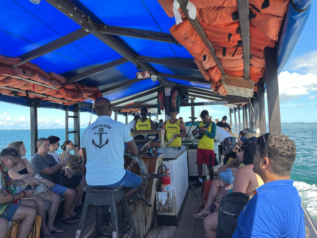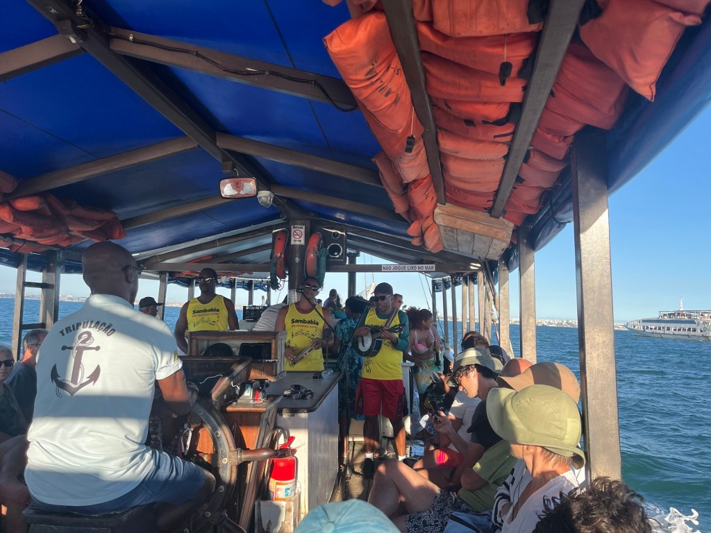 Un groupe de samba nous attend à bord du bateau, et la magie opère aussitôt. Soleil, mer, goélette, samba .. un cocktail gagnant qui lui, fonctionne à tous les coups. On kiffe, dur de rester en place avec ces rythmes et cette bonne humeur communicative.