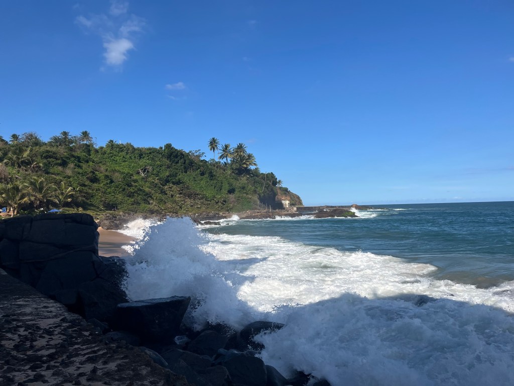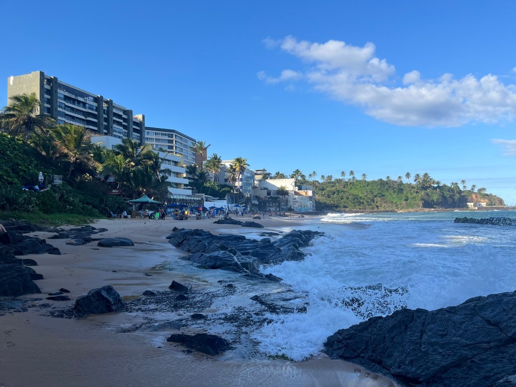 En prenant le temps, on découvre ensuite une minuscule plage à côté de chez nous, aussi dangereuse que splendide, et sans touriste. De telles plages dans une ville donne une toute autre perspective à la cité. Un véritable bijou hors des plages courues. Les costauds locaux pratiquent l’art de la brésilienne avec talent et l’application d’un chirurgien (placés en cercle, je jeu consiste à se faire des passes, avec toutes les parties du corps), les copines discutent avec leur coco fraîche à la main, tandis que les vagues de 3m s’éclatent sur le chemin des douaniers, ce qui n’empêche pas des baigneurs complètement loco d’aller s’y frotter, heureusement les pompiers veillent dans ce quartier chic. J joue au foot avec des fils à papa plus grands que lui et vraiment pas sympa, qui le prennent de haut, mais il ne se dégonfle pas, et donne tout. Ce voyage l’a beaucoup fait grandir. A écrit avec application et a également démarré son blog. C’est tellement amusant à lire !