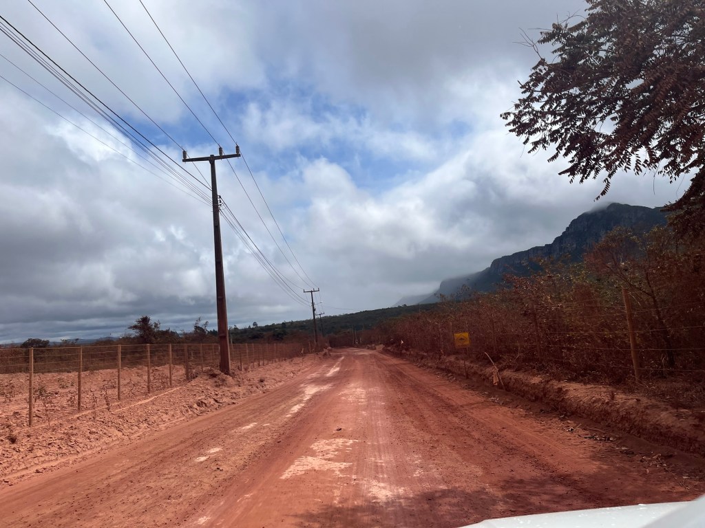 Quelques minutes de route, puis on entame une nouvelle piste de terre battue. L’impression de rouler sur le cours central de Roland, derrière les chenilles d’un bulldozer. La poussière rouge qui se dépose sur les feuilles du bord de la route créent un dégradé des plus chics. La route est droite mais n’oublie pas de remercier l’inventeur de l’amortisseur. Ça se lève un peu sur la plaine, les paysages traversés sont grandioses même si on dirait que personne ne s’en émeut.